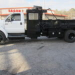 2008 Ford F750 Dump Truck, C7 Turbo CAT Diesel, Automatic, Cold AC, Air Brakes, Man Cab, 12′ bed, runs great! Call Sagon Trucks 770-471-8871